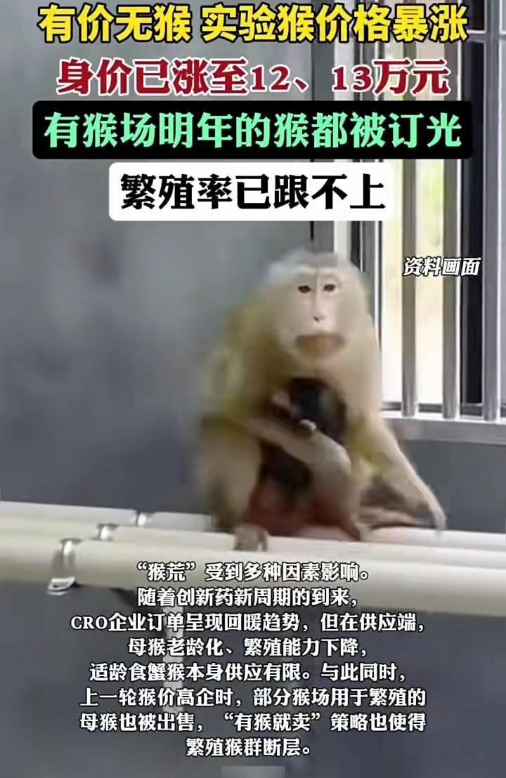 一只母猴一年的生息资本就达5000元,而8岁以上的老龄母猴生息率会大幅下落。数据夸耀,2023年国内生息母猴中80%已达老龄,种群断层告成导致适龄猴供应暴减。